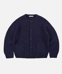 BRUSHED WOOL ROUND CARDIGAN _ PURPLE