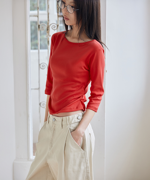 3/4 Sleeve Boat-Neck Tee, 4colors