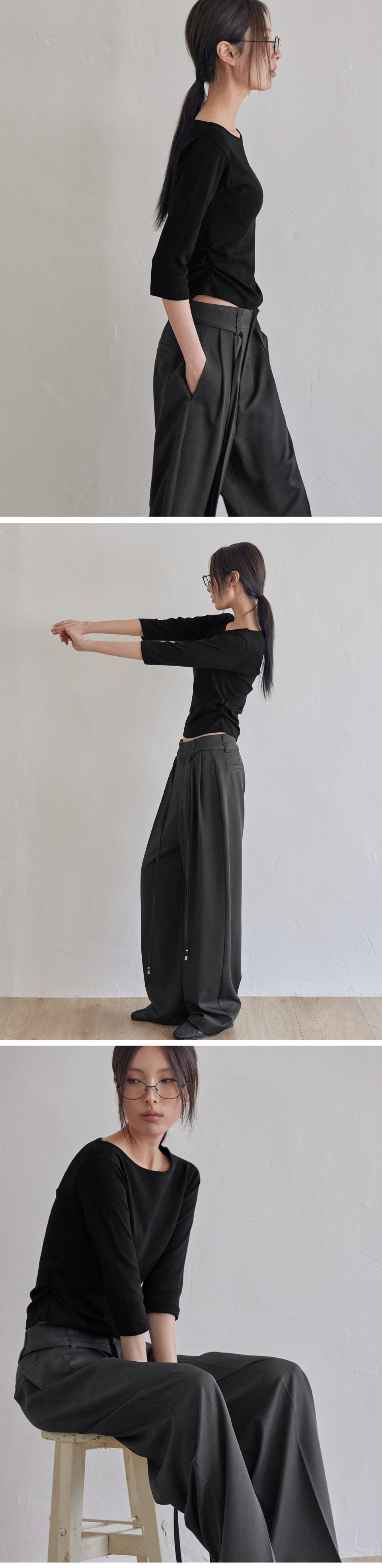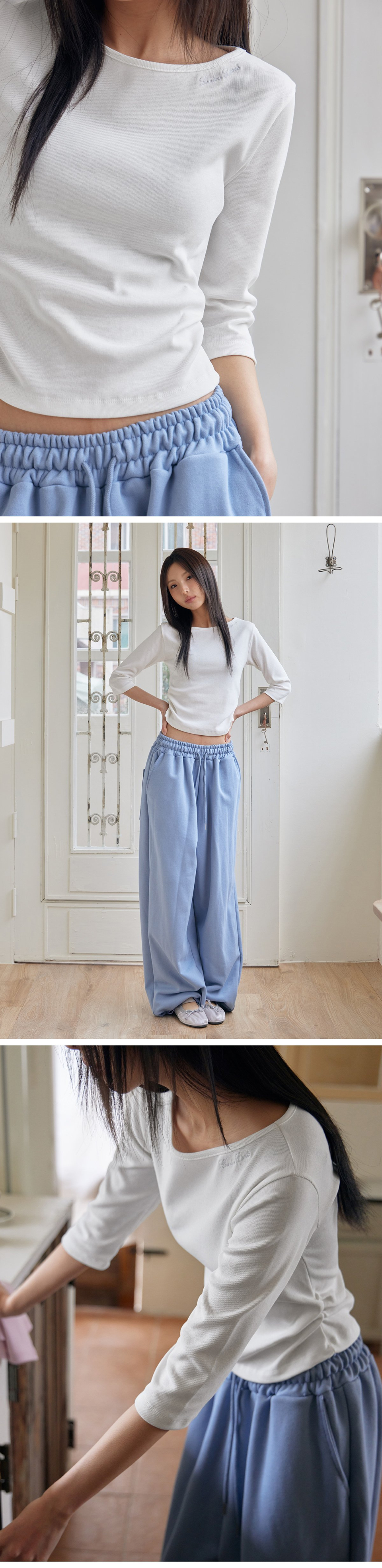 우먼즈 소프트 베이직 보트 유넥 스터드 포인트 7부 슬리브 티셔츠 _4COLOR
