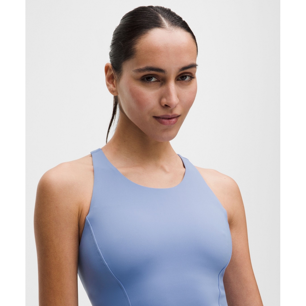 통기성이 탁월한 Everlux™ 원단의 탱크탑으로 깊게 파인 레이서백 디자인이 자유로운 움직임을 선사해요. 가슴과 네크라인, 암홀 앞부분에 커버력을 더했어요.
