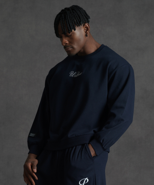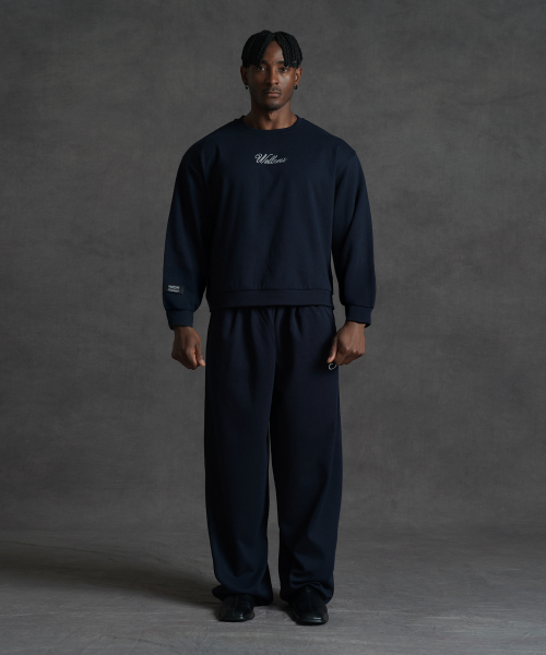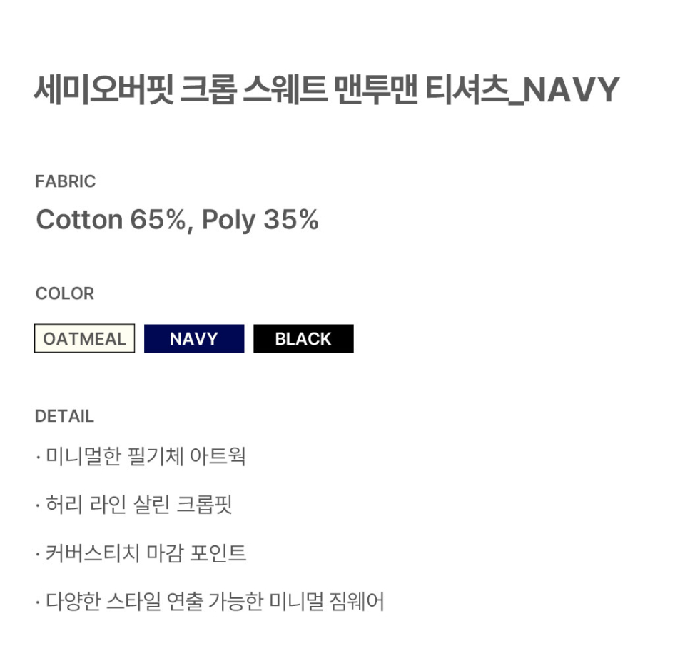 세미오버핏 크롭 스웨트 맨투맨 티셔츠 - 네이비