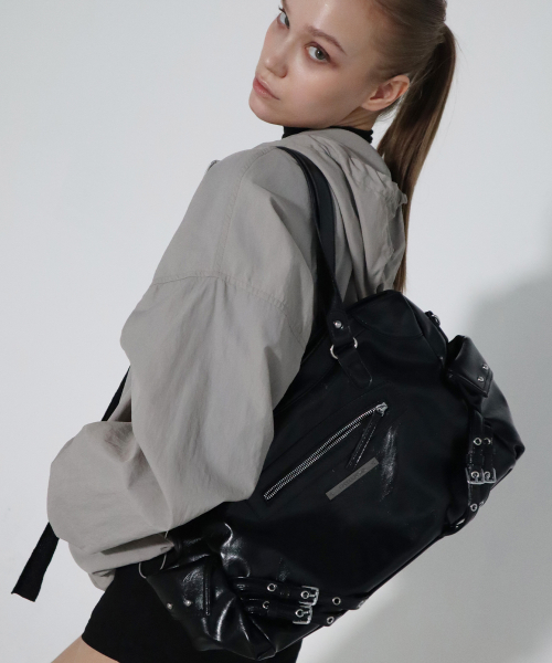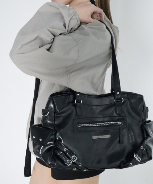 사이드 버클 스트랩 숄더백 블랙