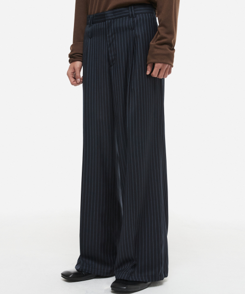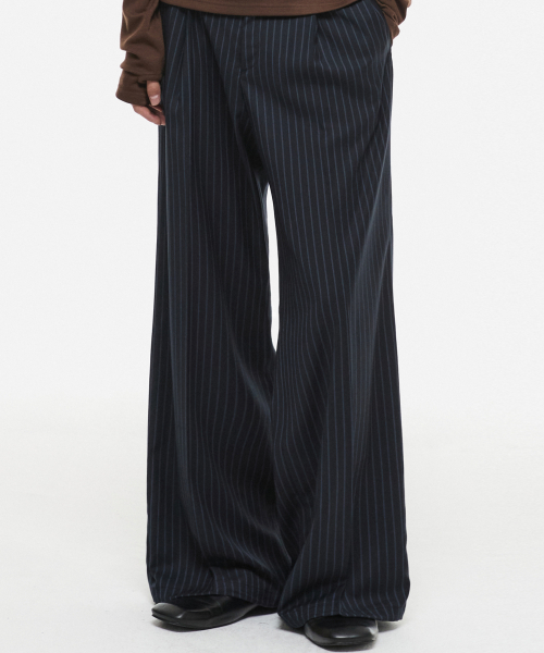 더블 루프 와이드 플레어 스트라이프 슬랙스 네이비