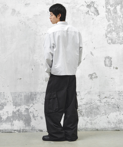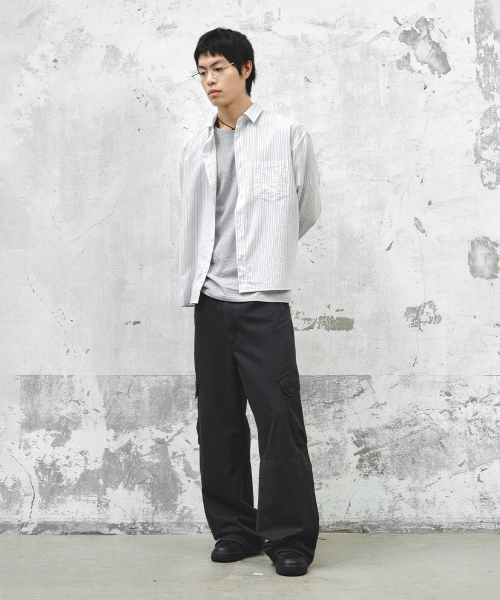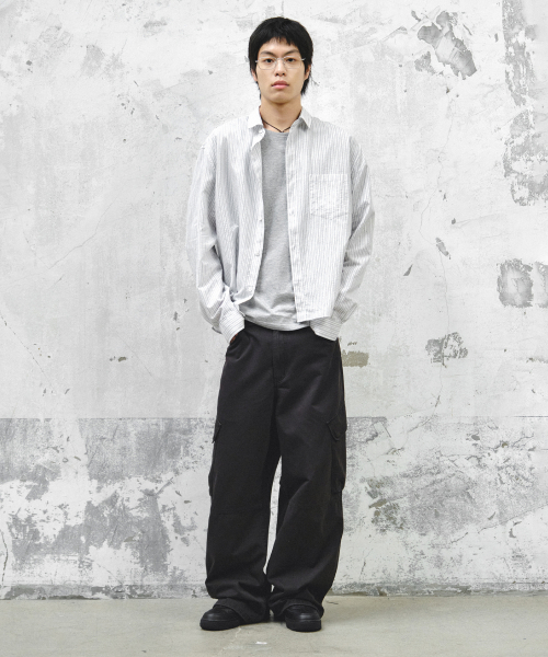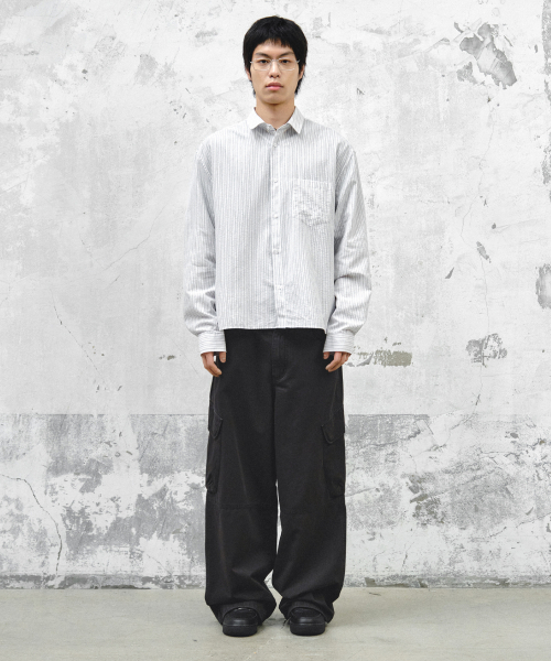 - L : 총장 106cm 허리단면 42cm 허벅지단면 36.5cm 밑위 34cm 밑단단면 30.5cm
