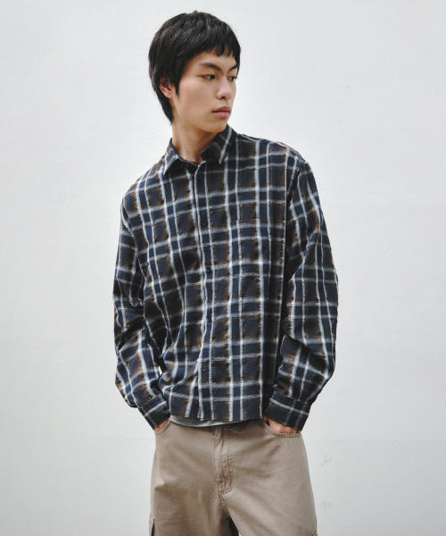 미드나잇 체크 크롭 셔츠 ( Midnight Check Crop Shirt )