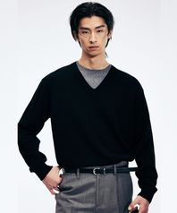Layered V-Neck Knit Top (Black) TNSW6E102BK