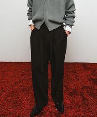 울 자카드 벨티드 투 턱 와이드 슬랙스 (브라운)