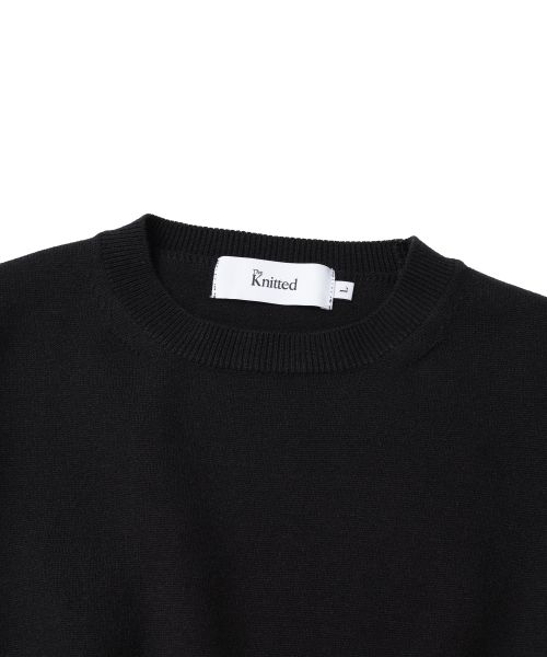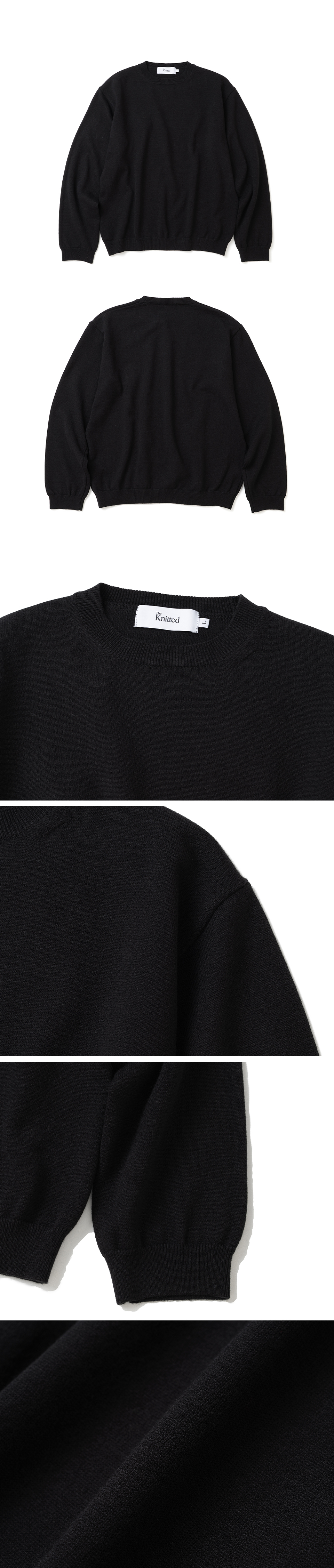 베이직 에센셜 크롭 라운드 니트 BLACK