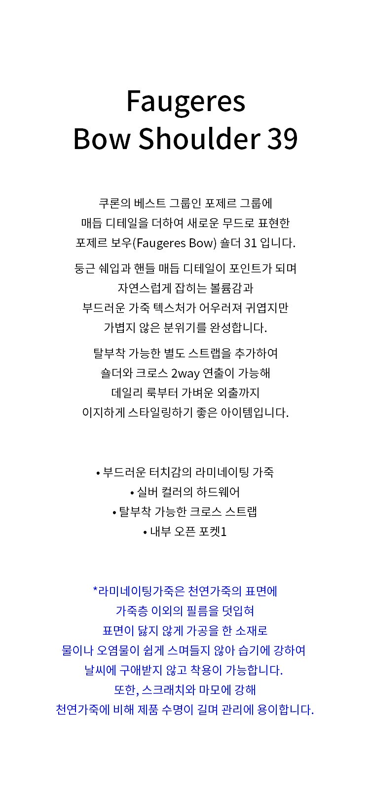 * 소재:라미네이팅 가죽 / 폴리에스터 80% 면 20% (안감)
