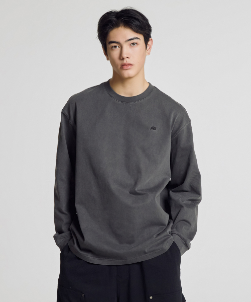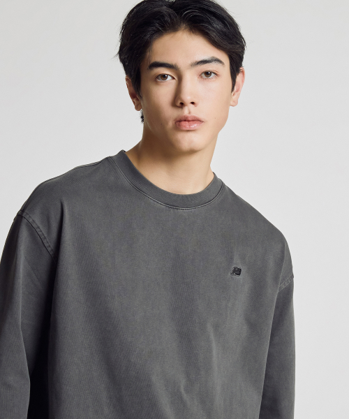 NBNDG21204 / UNI 에센셜 스몰로고 워시드 긴팔티 (CHARCOAL)