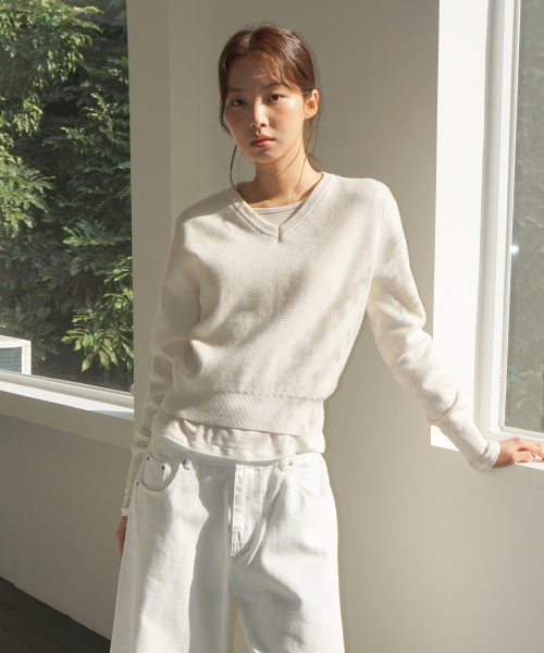 (woman) 에센셜 무드 크롭 브이넥 니트_Olive