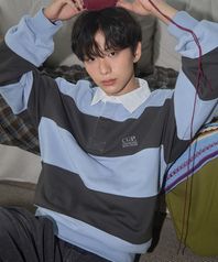 스트라이프 럭비 맨투맨-캔디 블루