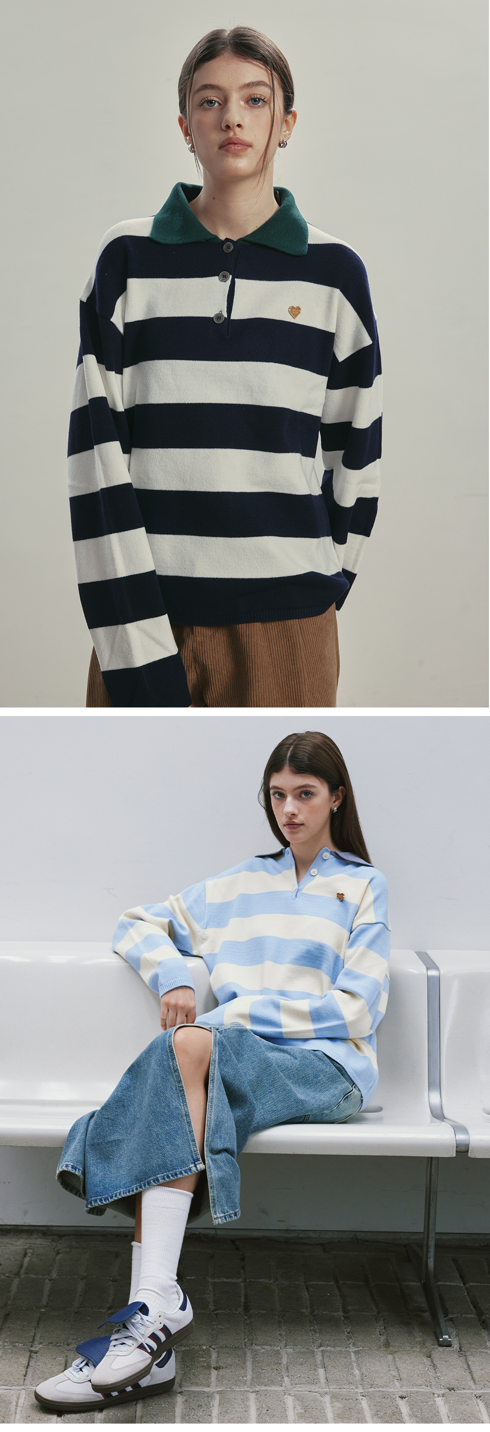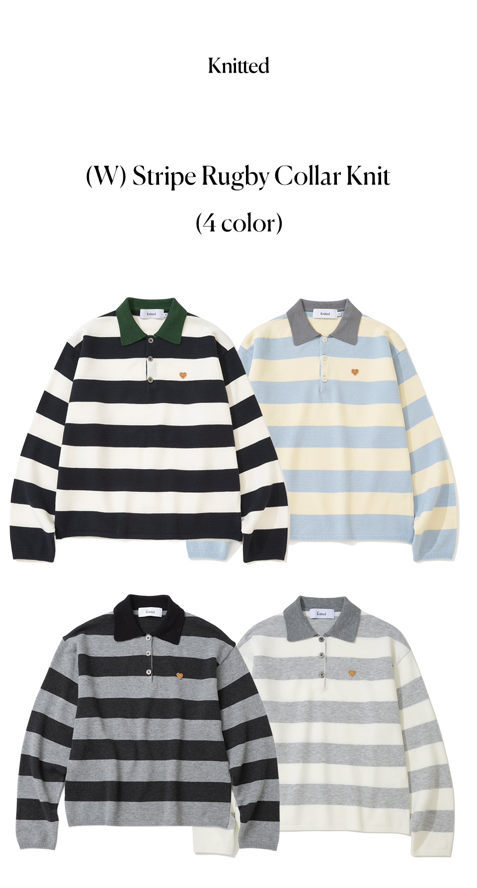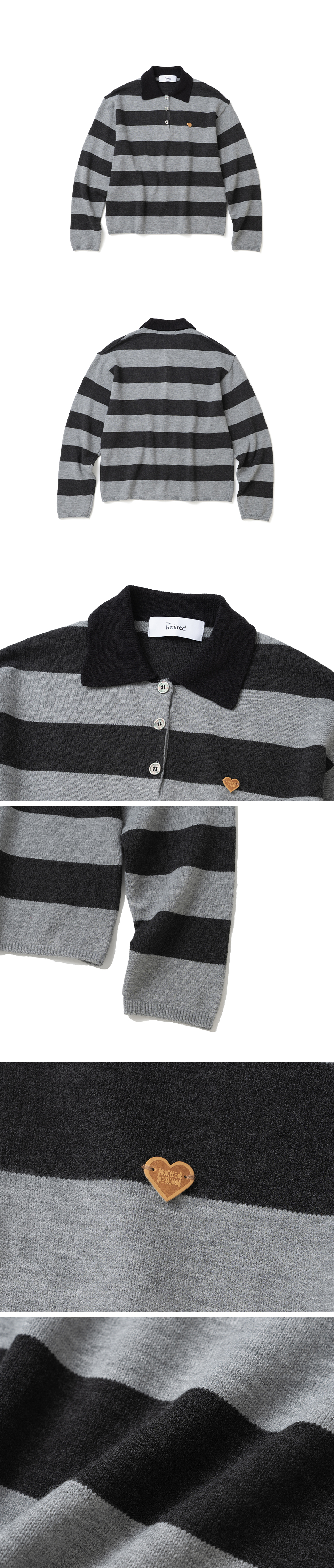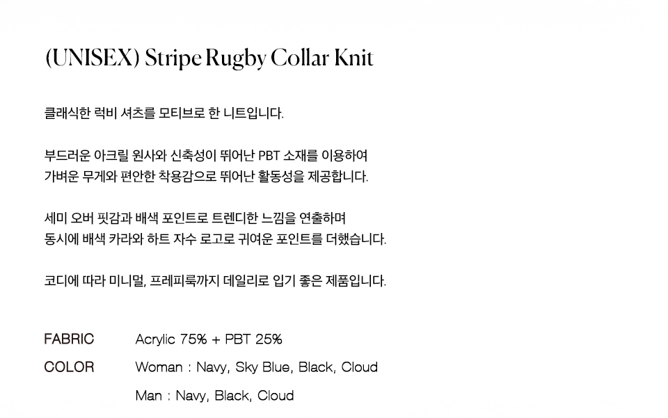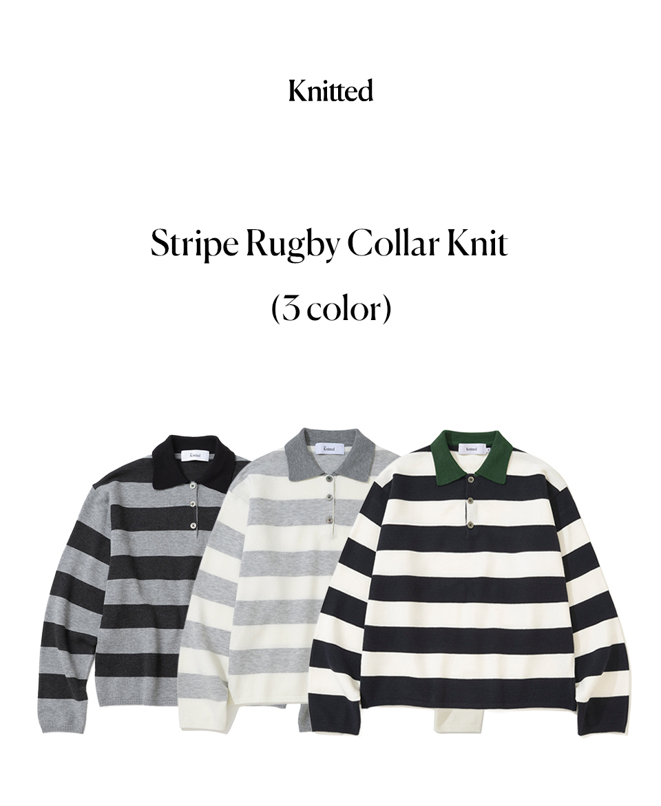 (UNISEX) 스트라이프 럭비 카라 니트 BLACK