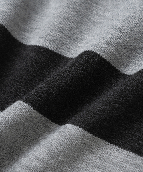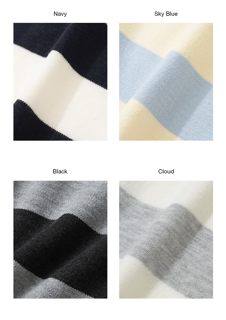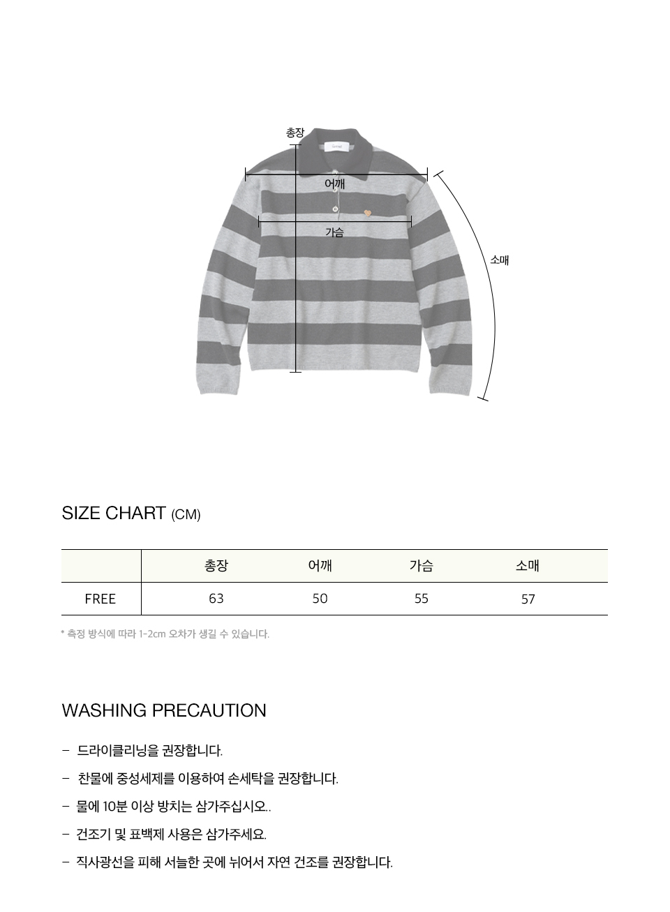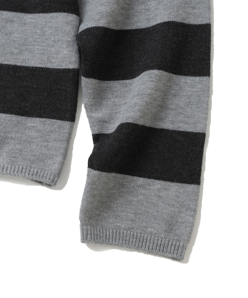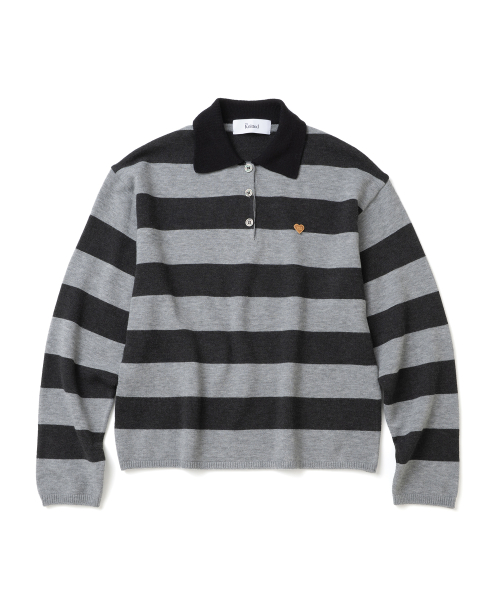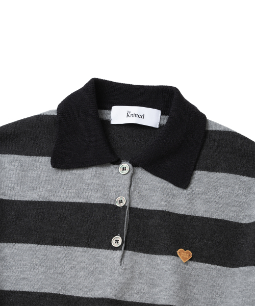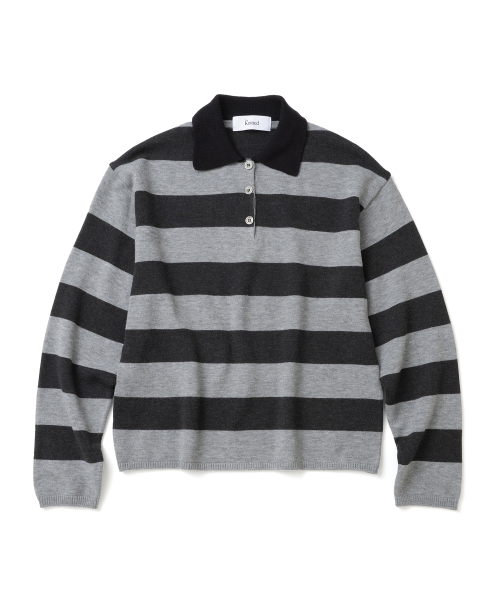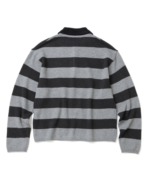 (UNISEX) 스트라이프 럭비 카라 니트 BLACK