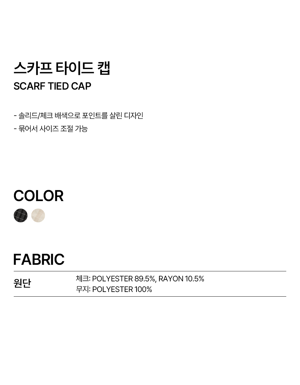 W 스카프 타이드 캡 (BLACK)