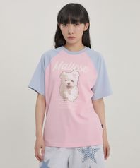 구름 일러스트 래글런 반팔티셔츠 핑크