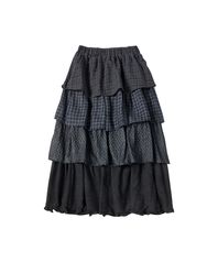 W CHECK UNBALANCE SKIRT [BLACK]