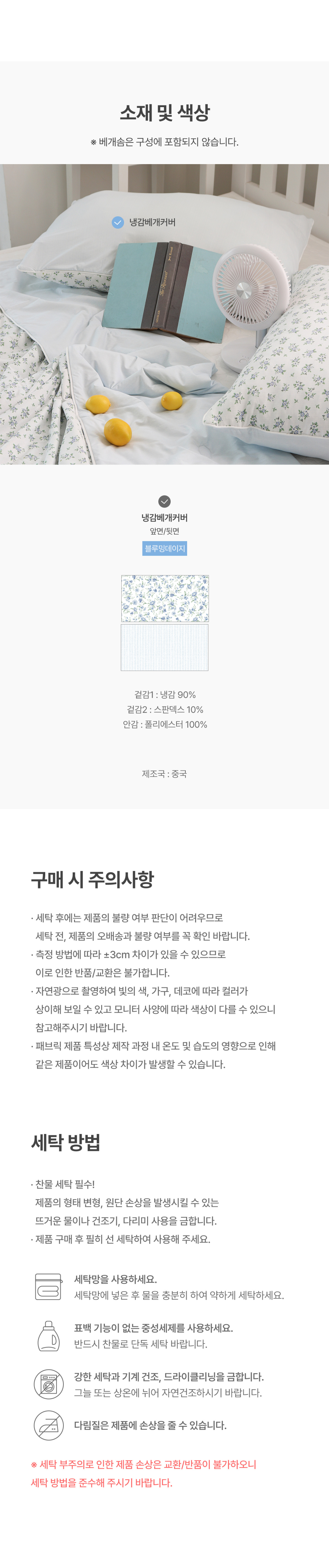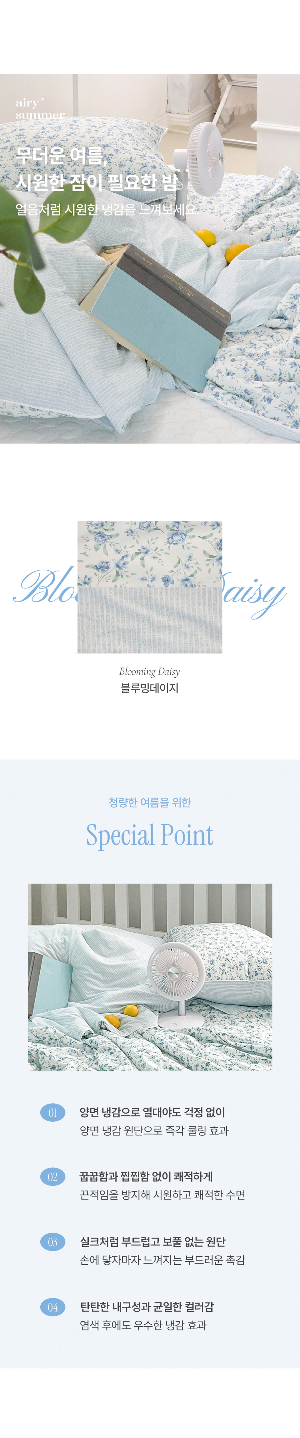 에어리썸머 블루밍데이지 양면 냉감 여름 베개커버 쿨링 아이스 여름