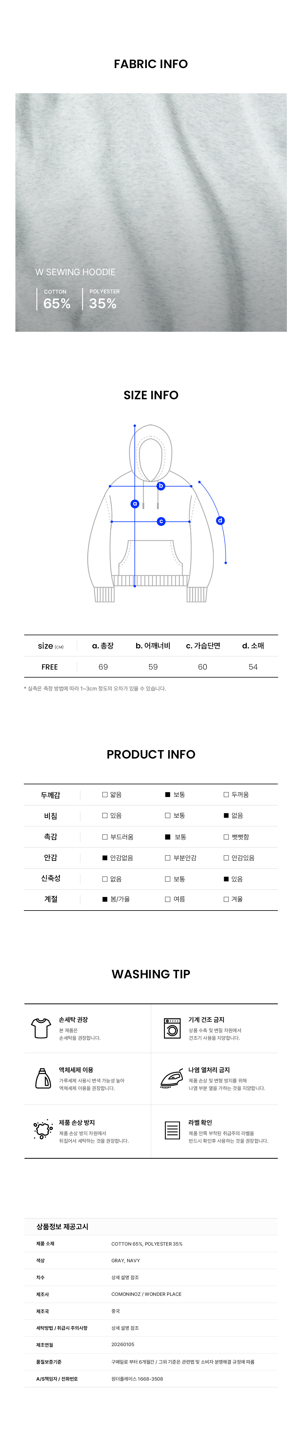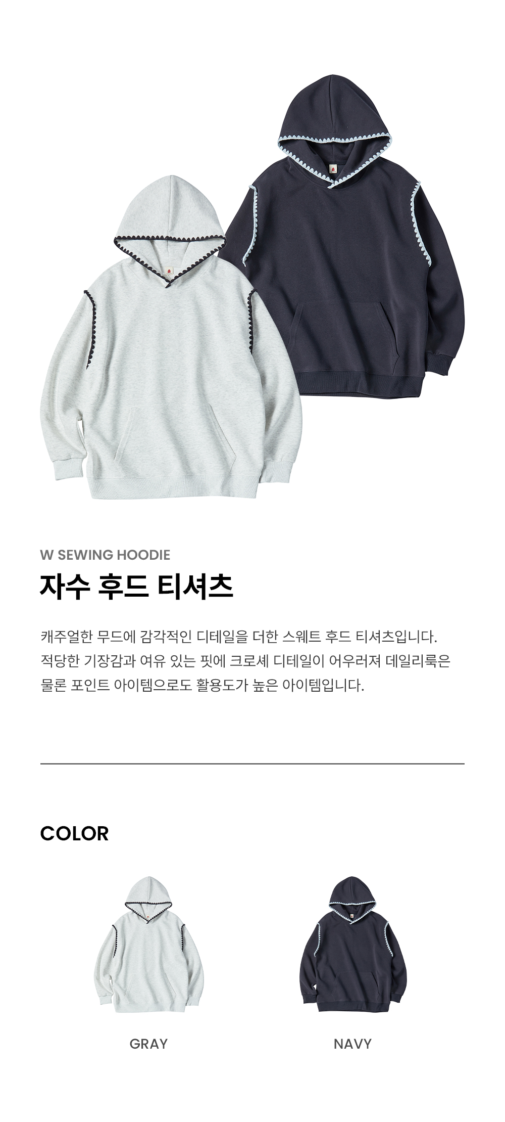 W SEWING HOODIE [GRAY]