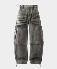 디스트레스드 컨버터블 카고 팬츠 - 챠콜