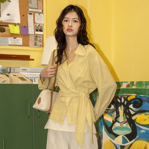 DD_Waist tie wrap shirt_YELLOW