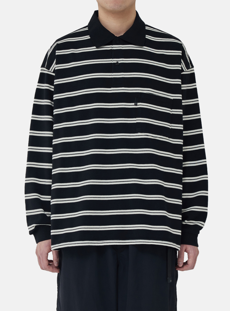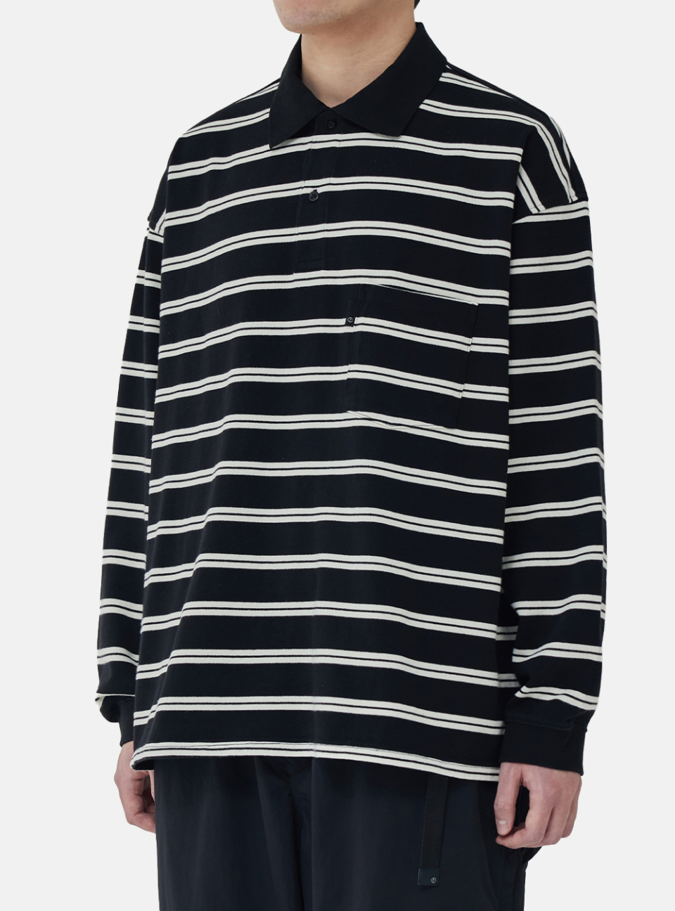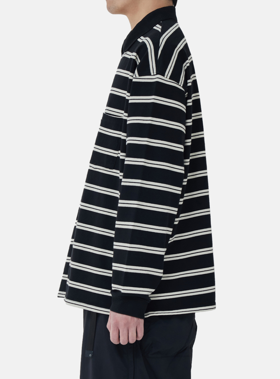 [SS26] WIDE POLO L/S SHIRT / BLACK STRIPE