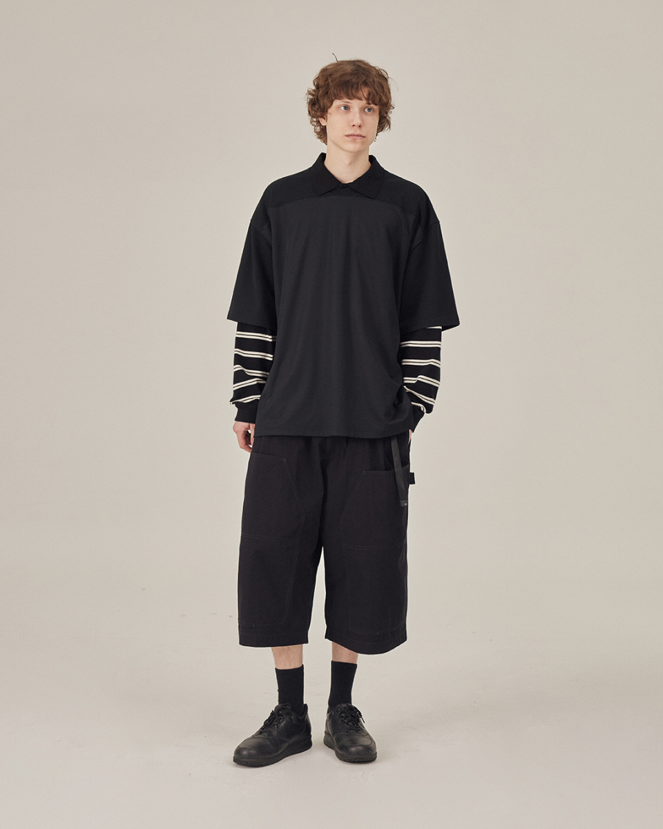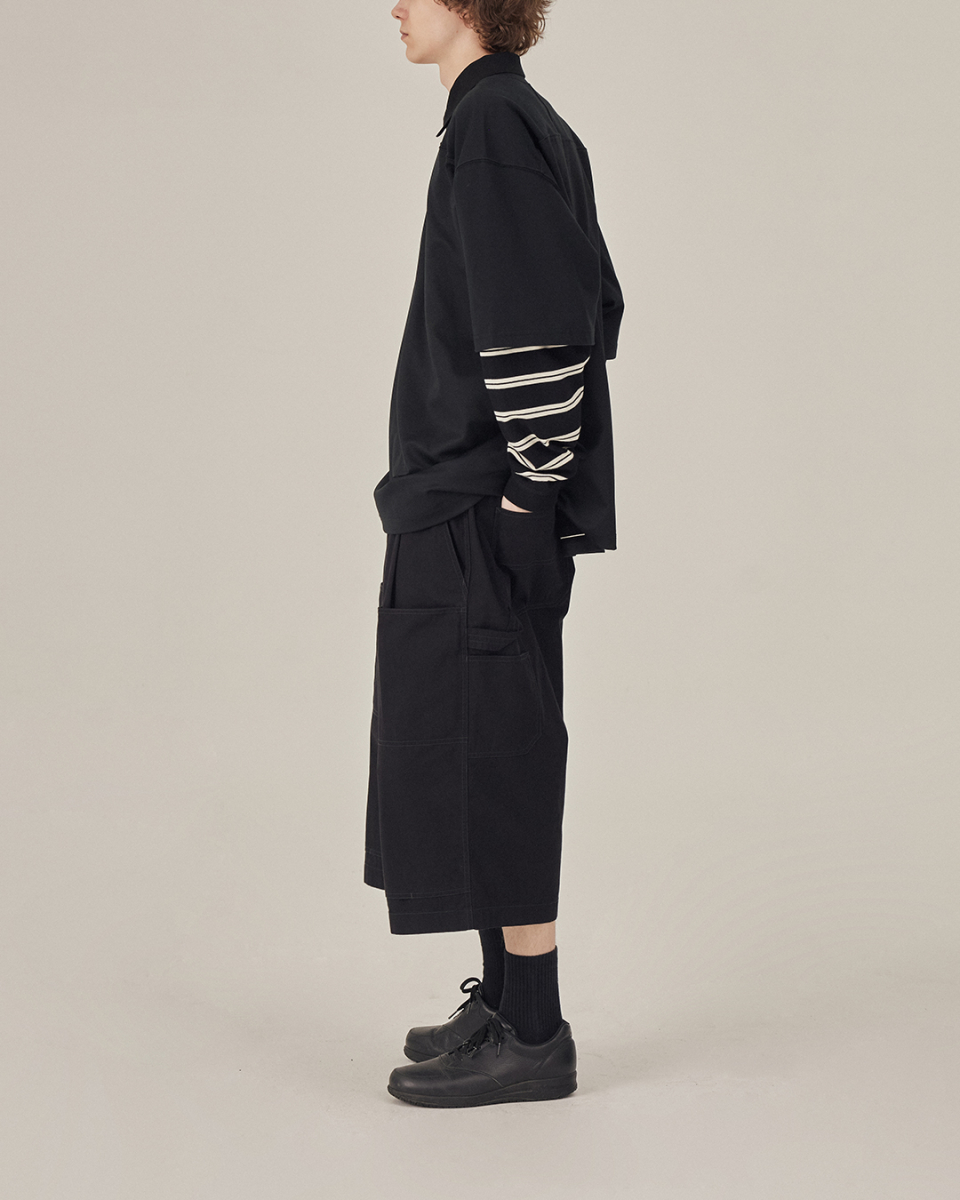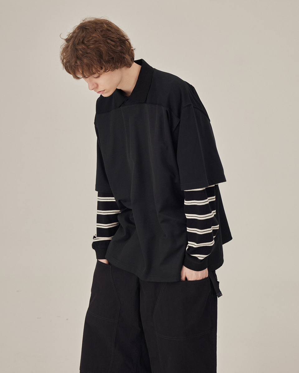 [SS26] WIDE POLO L/S SHIRT / BLACK STRIPE
