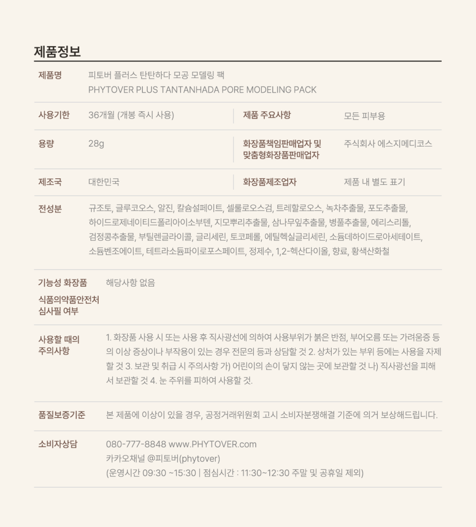 탄탄하다 모공 모델링 팩 28g