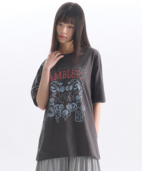 Roses 그래픽 반팔 티셔츠 AS1307 (다크그레이)