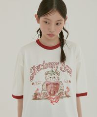 Strawberry Bear 그래픽 링거 반팔 티셔츠 AS1213 (아이보리)