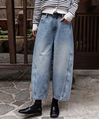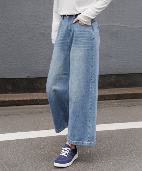 깔끔한 실루엣을 유지해 주는 와이드 데님 팬츠