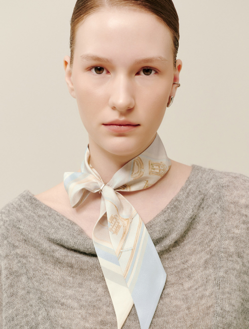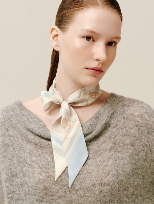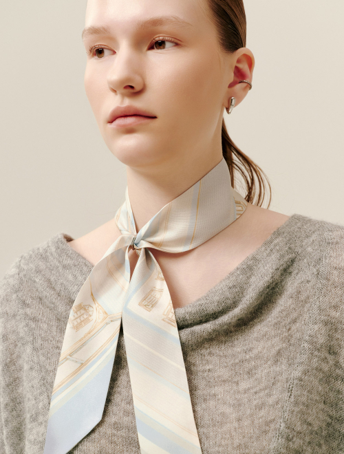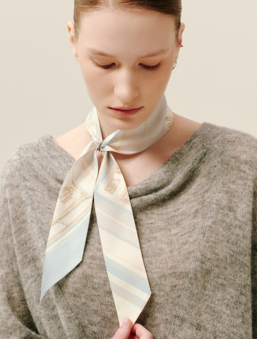 롱 트윌리 실크 스카프 - 네이비