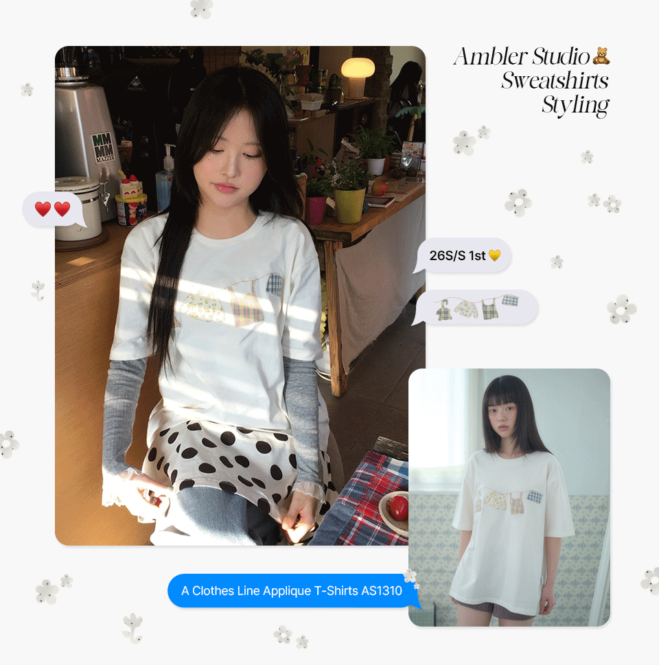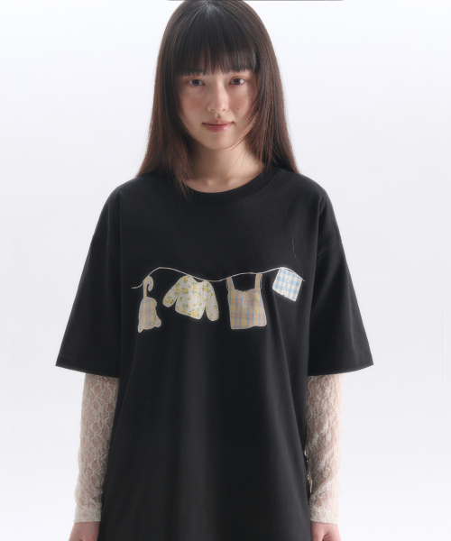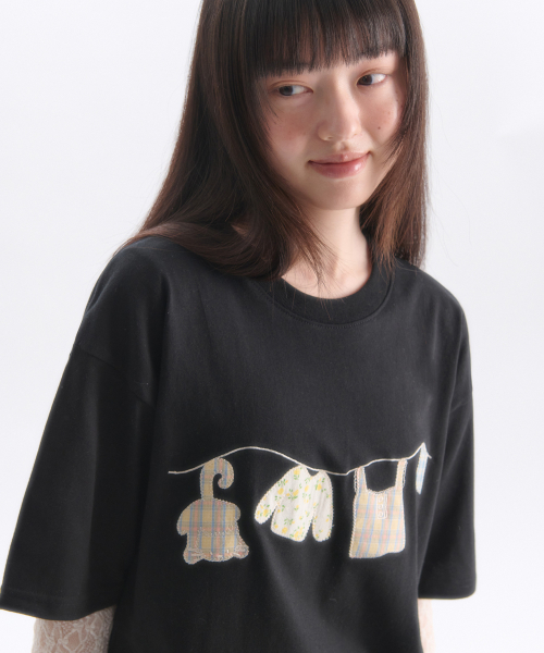 A Clothes Line 아플리케 자수 반팔 티셔츠 AS1310 (블랙)