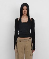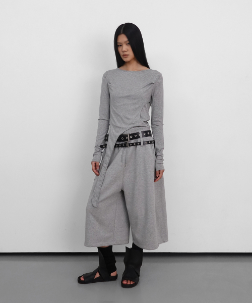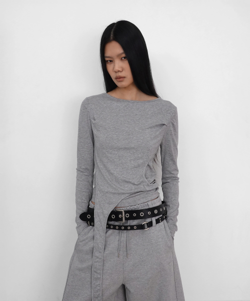 Layered Strap Long Sleeve_Melange Grey