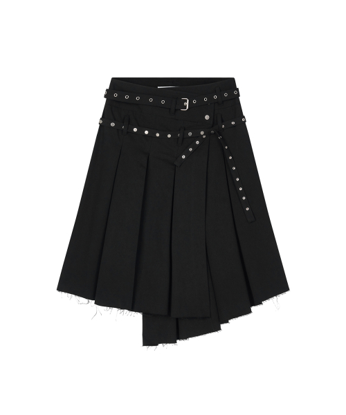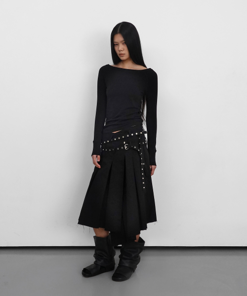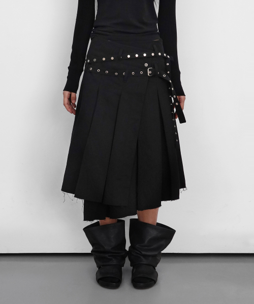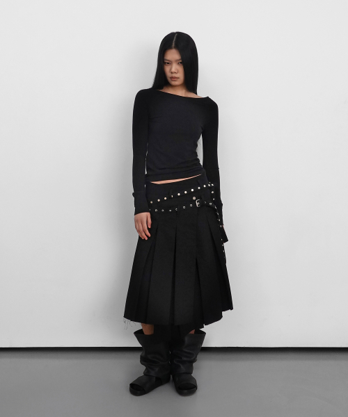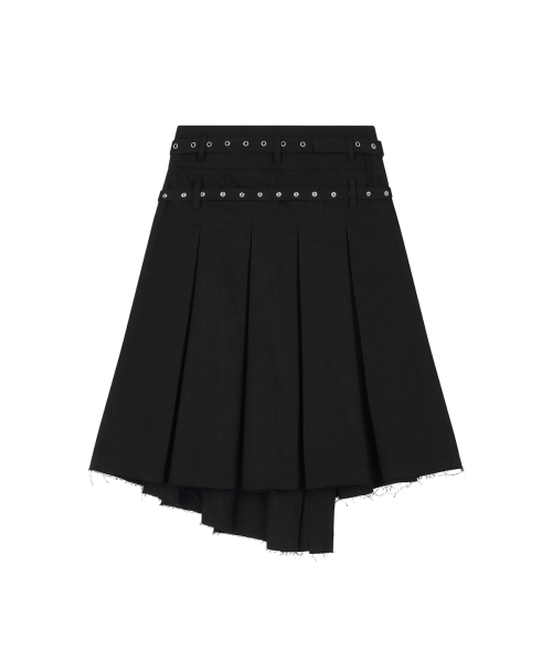 Eyelet Layered Midi Skirt_Black