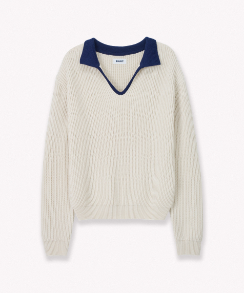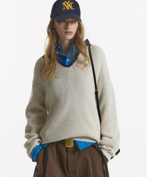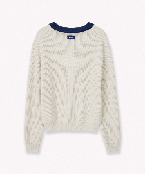 RIBBED V-NECK KNIT IVORY