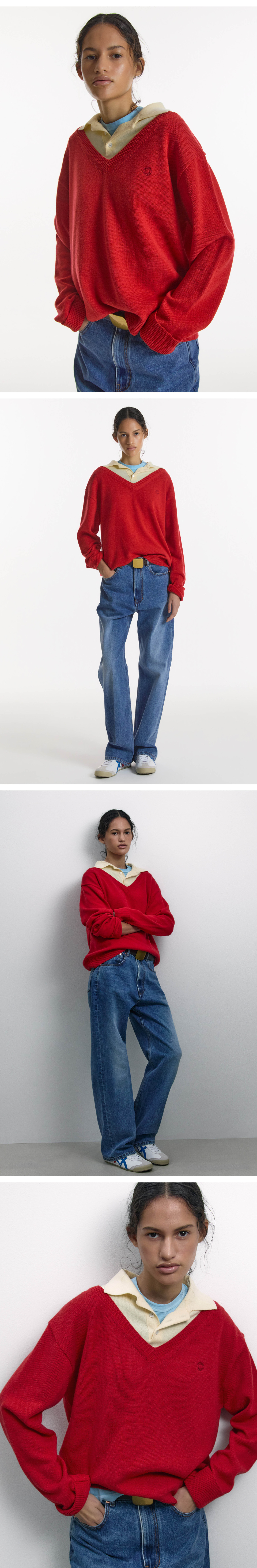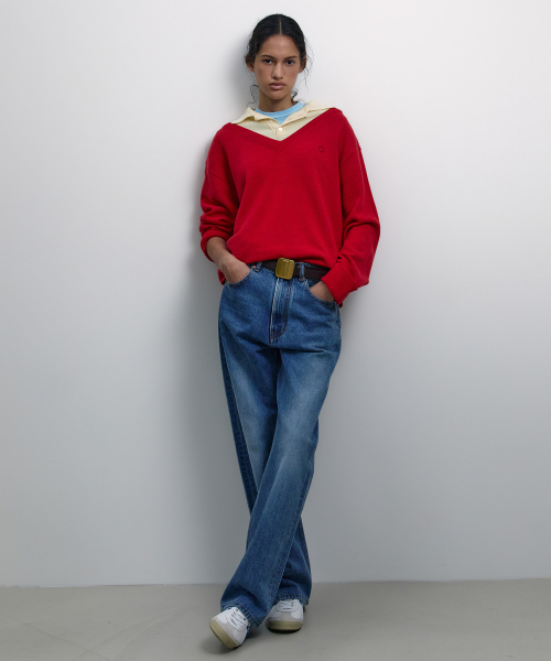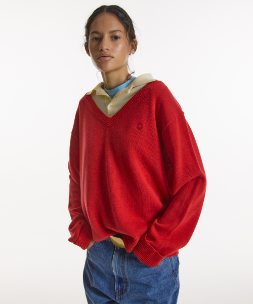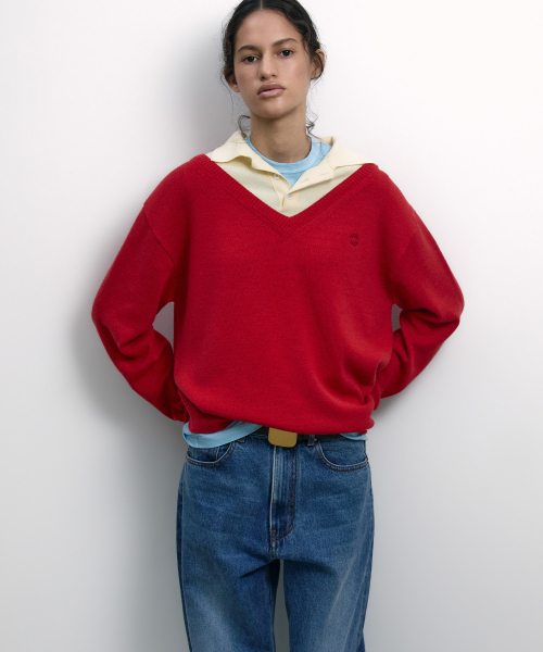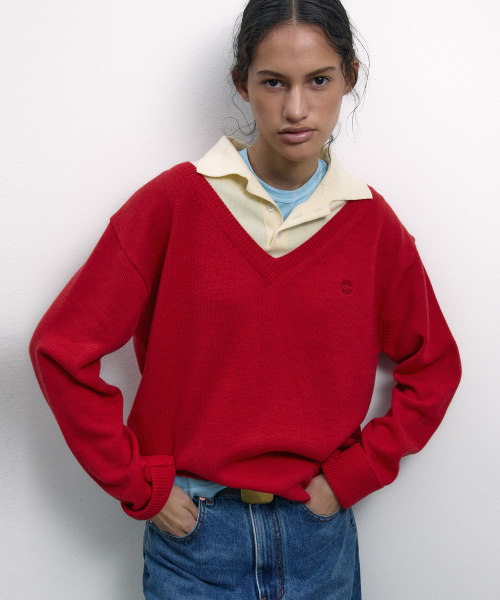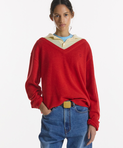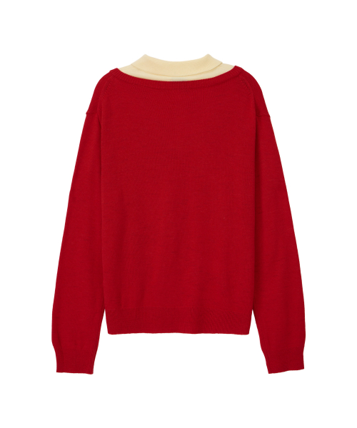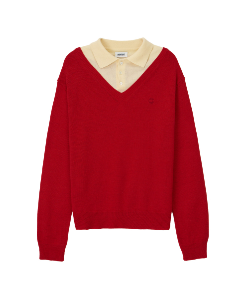 LAYERED V-NECK COLLAR KNIT RED