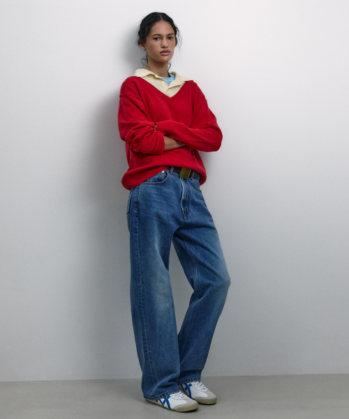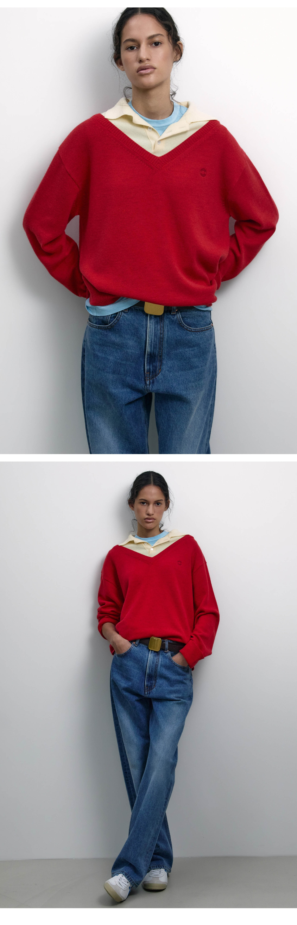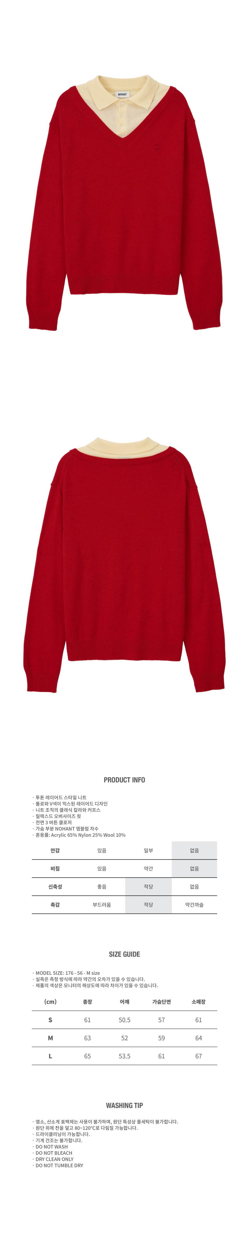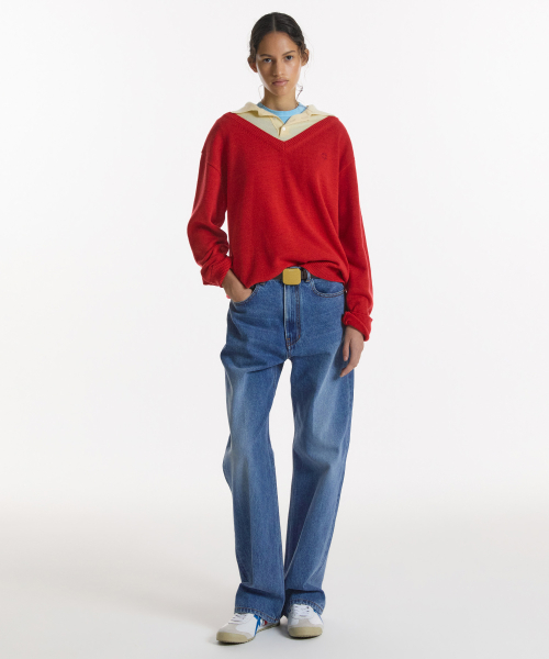 LAYERED V-NECK COLLAR KNIT RED