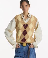 CASHMERE BLENDED ARGYLE VEST BEIGE