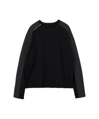 목을 감싸며 부드럽게 떨어지는 비대칭 사선 지퍼 라인으로 오픈, 클로징에 따라 다양한 실루엣 연출