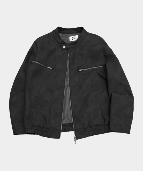 스웨이드 투웨이 집업 바이커 자켓 블랙