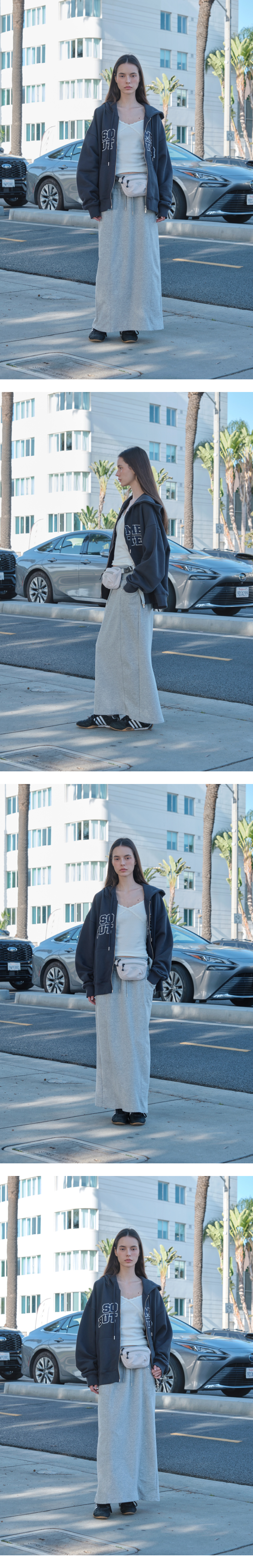 Satin Heart Logo Hoodie Zip-Up - Charcoal