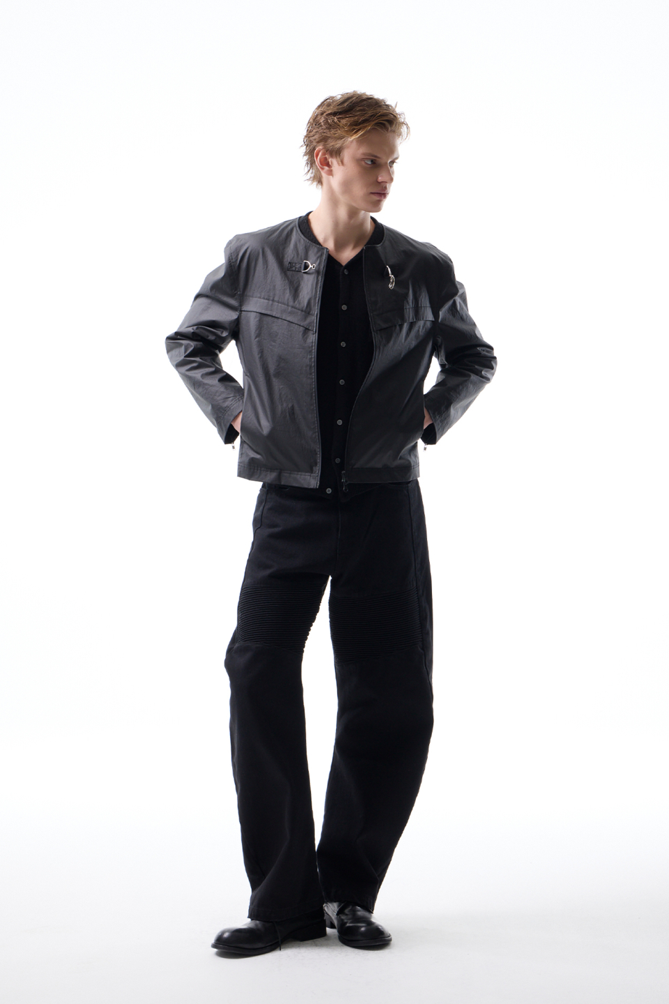 깔끔하게 떨어지는 레귤러 실루엣과 사이드 패널 절개 디테일로 구조적이고 남성적인 실루엣 완성