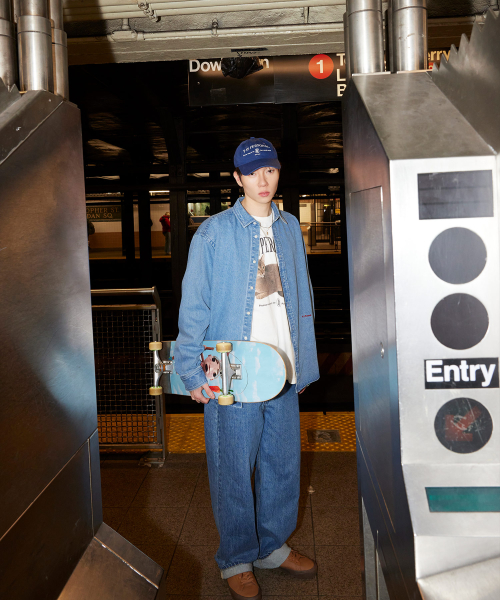 페퍼유 X 플랙 루즈핏 데님 팬츠 R20 미드블루