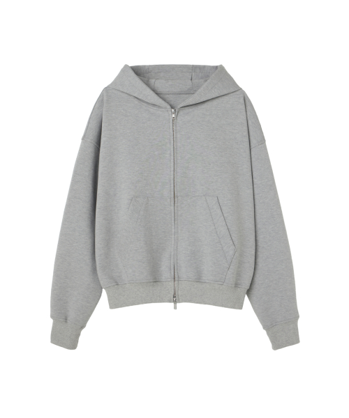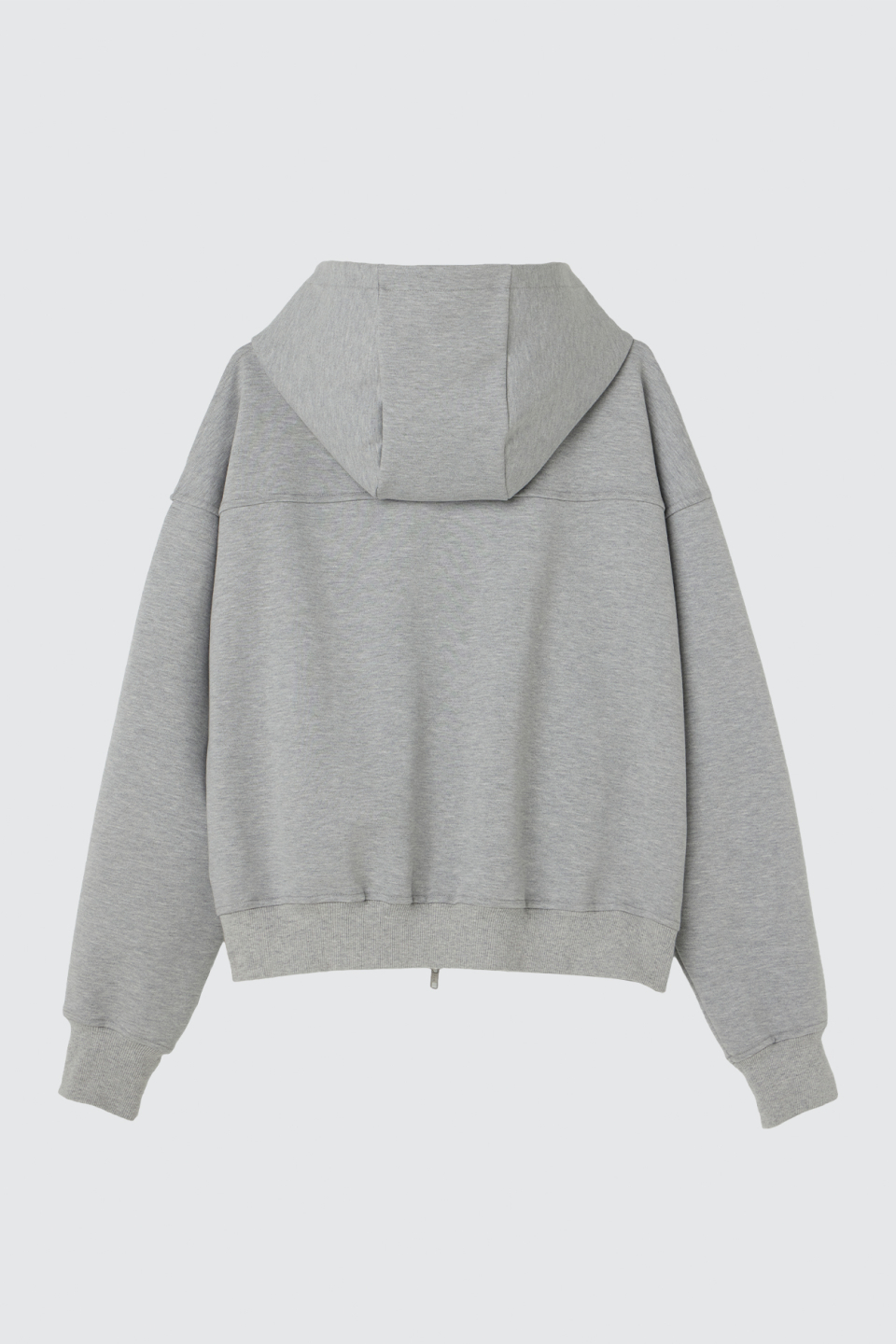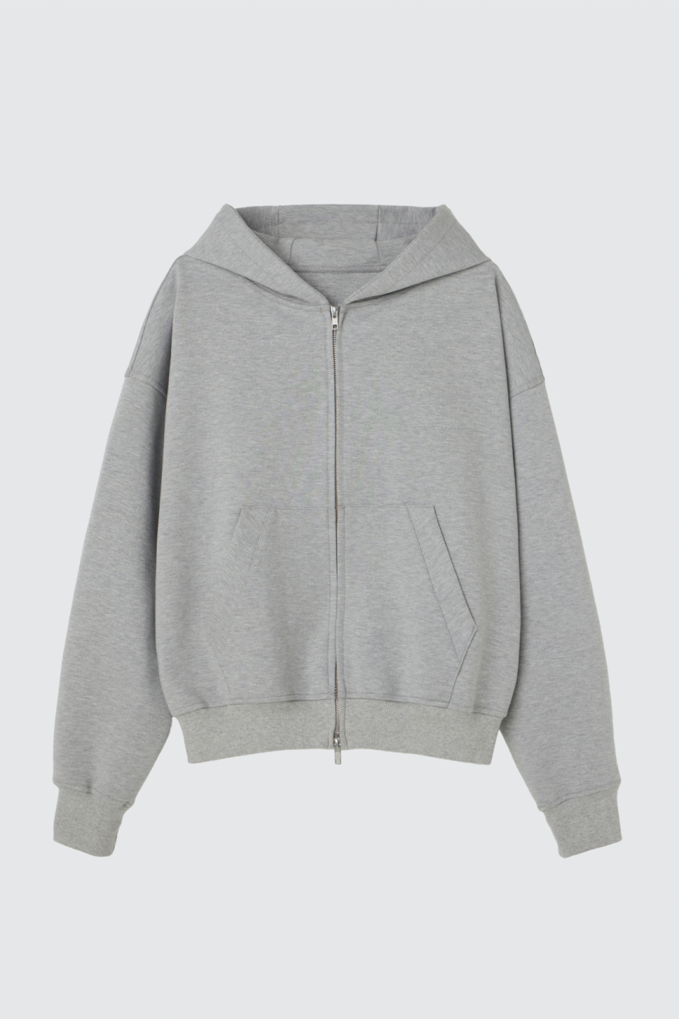 탄탄한 고밀도 양면 코튼 원단에 후드끈이 없는 큰 후드모자와 투웨이 지퍼 디테일
