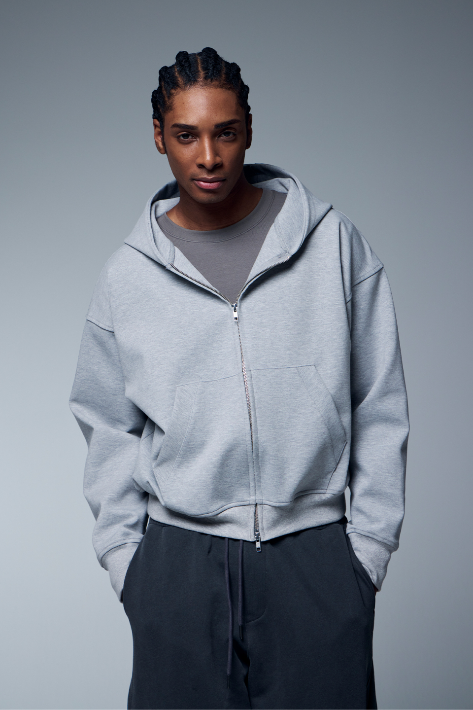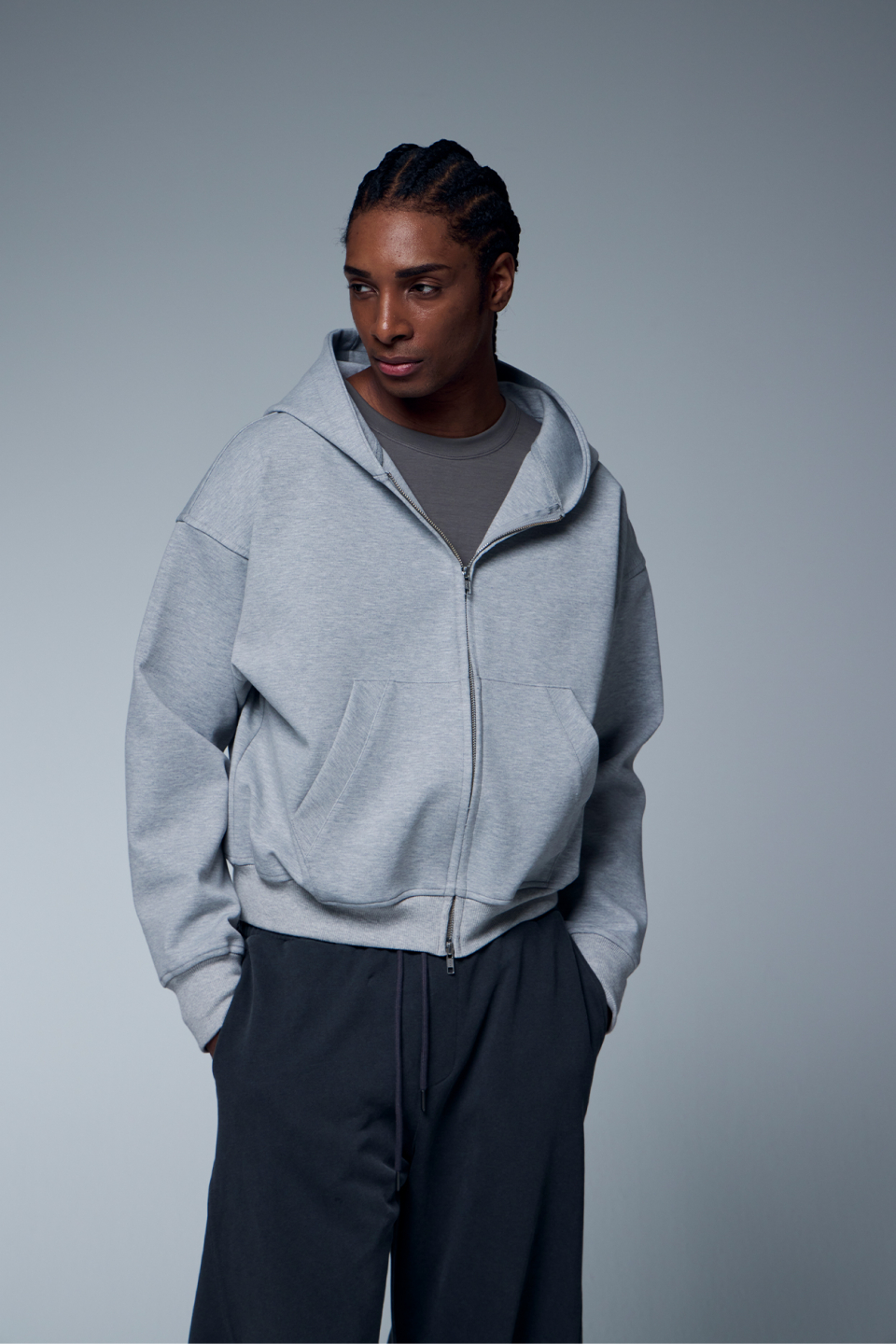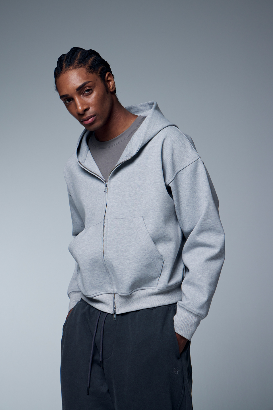 미니멀한 인플런서 젠플록스와 르아브의 모던 남성 무드를 콜라보한 스웨트 후드집업