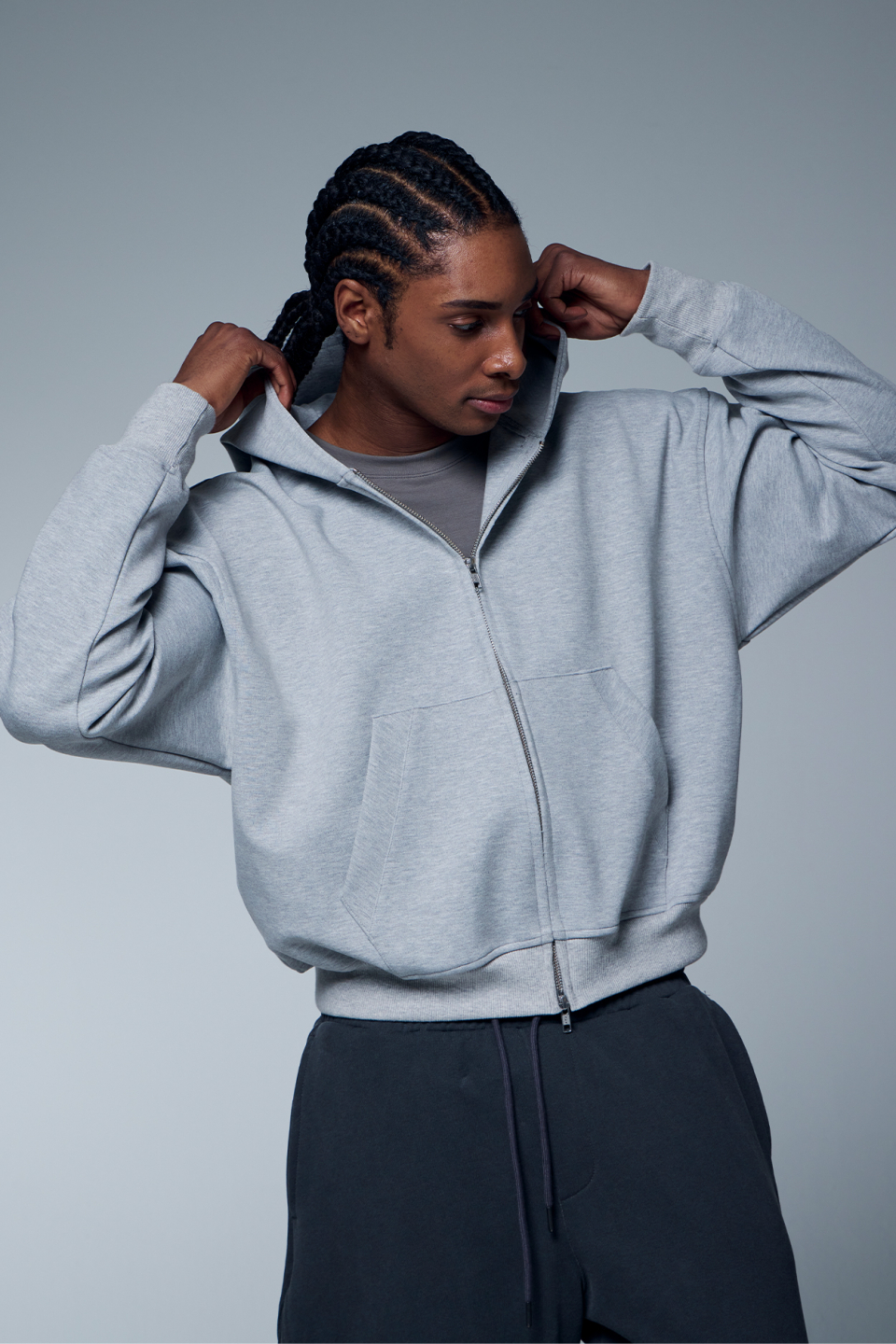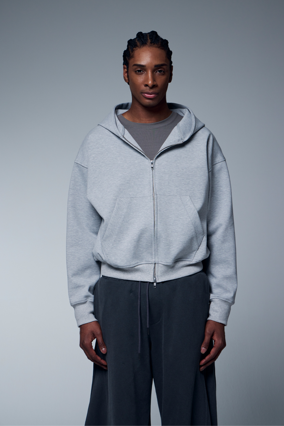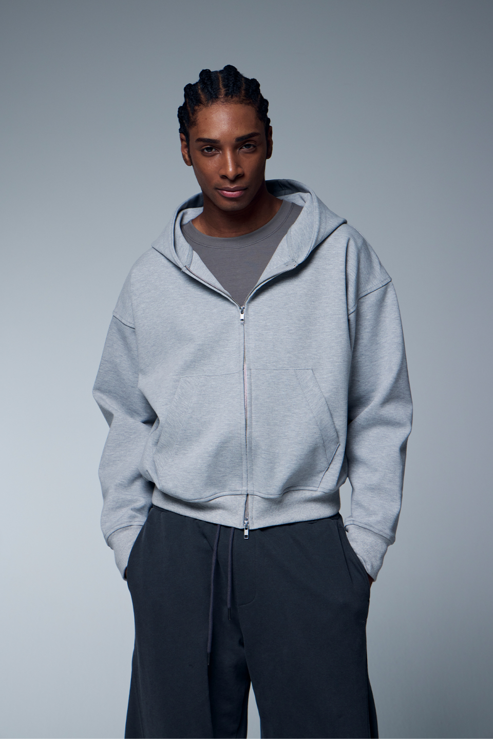 미니멀한 인플런서 젠플록스와 르아브의 모던 남성 무드를 콜라보한 스웨트 후드집업