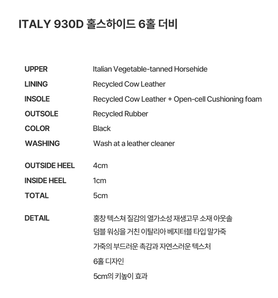 ITALY 930D 홀스하이드 6홀 더비 블랙
