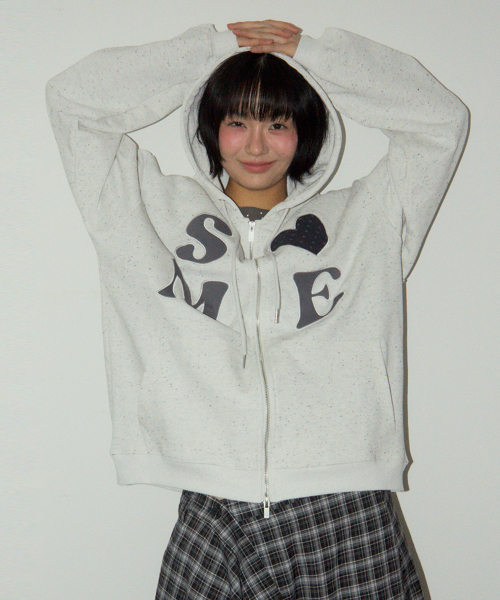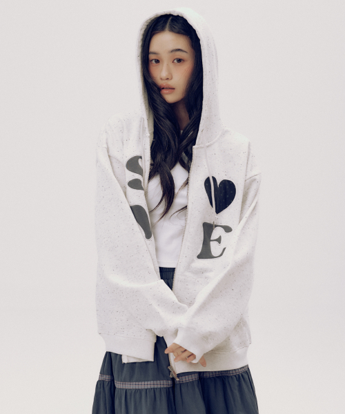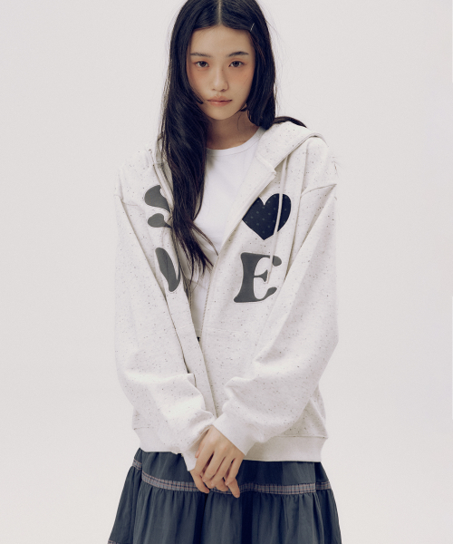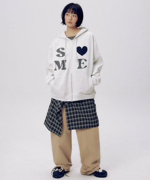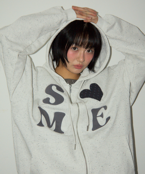썸 하트로고 아플리케 패치 투웨이 스웻 오버핏 후드집업 [메란지]