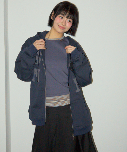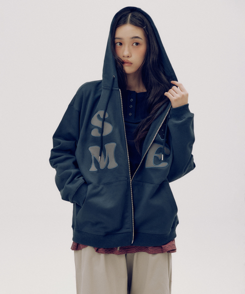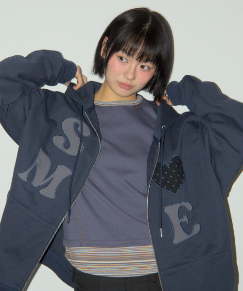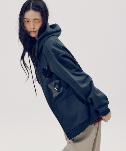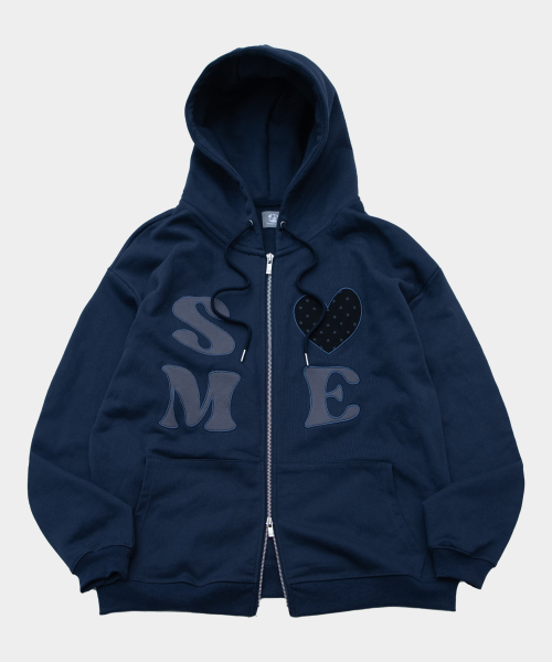 썸 하트로고 아플리케 패치 투웨이 스웻 오버핏 후드집업 [네이비]